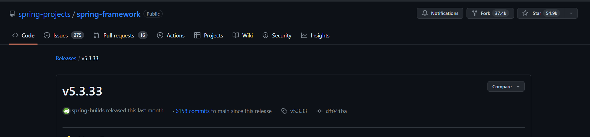 Gihub地址: https://github.com/spring-projects/spring-framework/releases/tag/v5.3.33